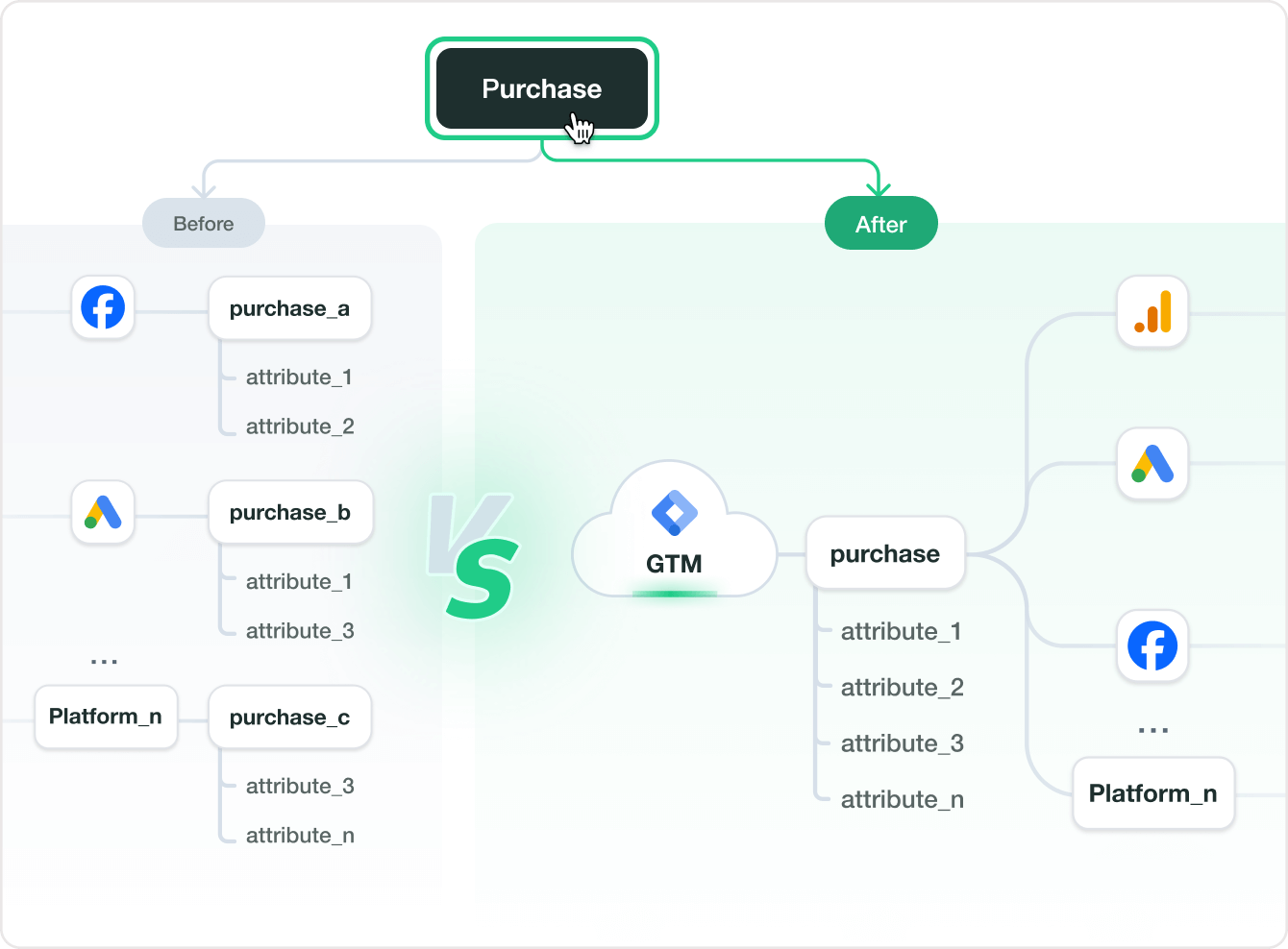 Seamless Connections: Effortlessly integrate with Meta, Google Ads, GA4, and more to deliver precise conversion data.Consistent Standards: A single, unified data schema ensures accurate, uniform, and comparable tracking across every channel.