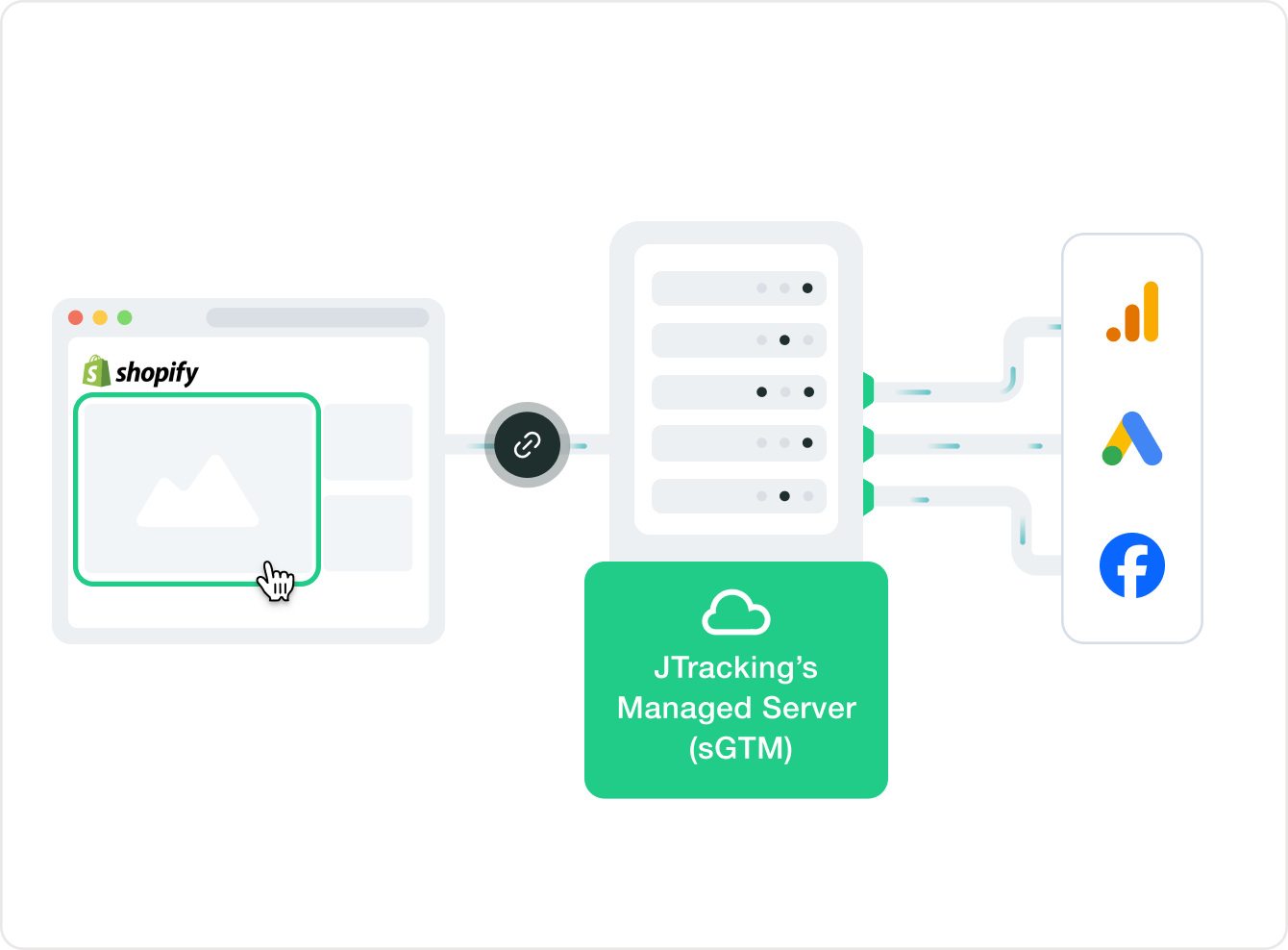 JTracking uses first-party, server-to-server tracking. Data collection is fully compliant with global privacy standards, and you control what data is shared with platforms.